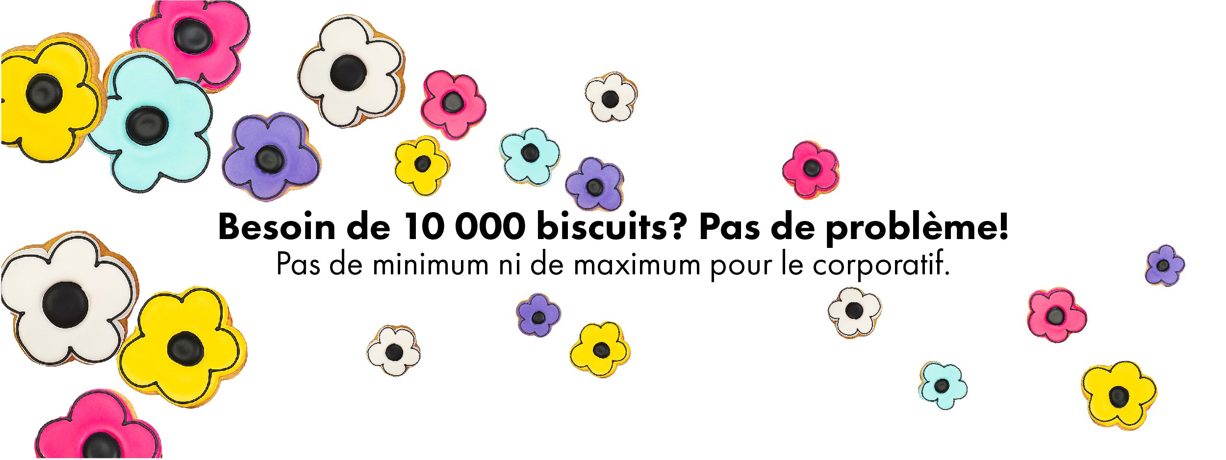 À La Biscuiterie, nous sommes fièrs de vous faciliter la vie en vous proposant des biscuits cadeaux à l'image de votre marque, du biscuit à l'emballage.