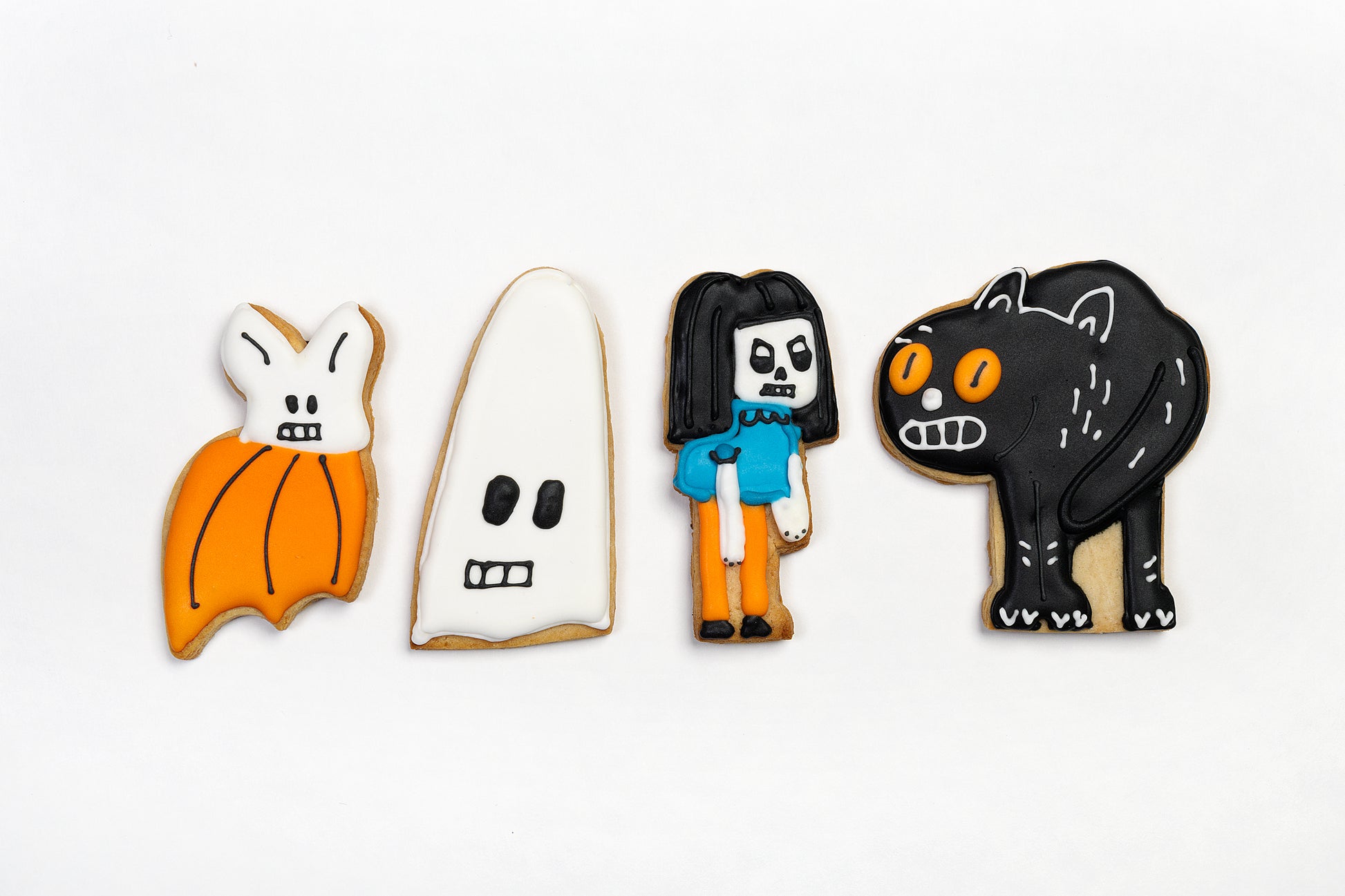La bande de zombies est adorée par tous les fans d'Halloween. Qui mordera en premier, le chat, le fantome, la chauve-sourie, la petite zombie ou l'heureux récipiendaire?