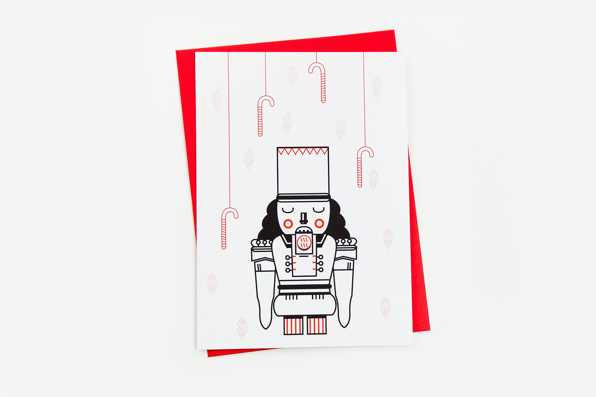 Notre Casse-Noisette au petit air rock à la Kiss de notre série moderne de cartes et de biscuits Casse-Noisette revisité est trop cool! Enveloppe rouge incluse.