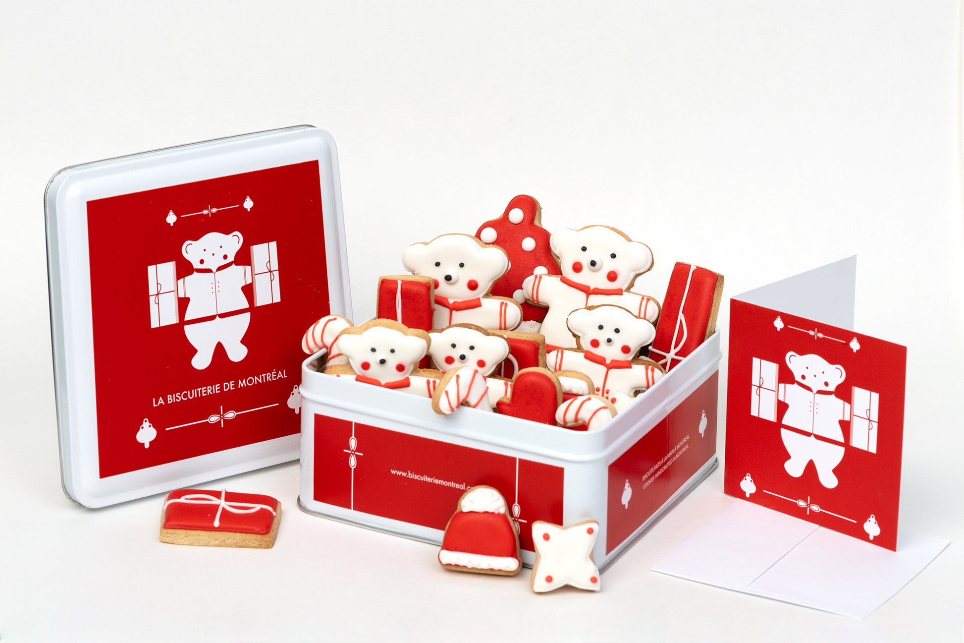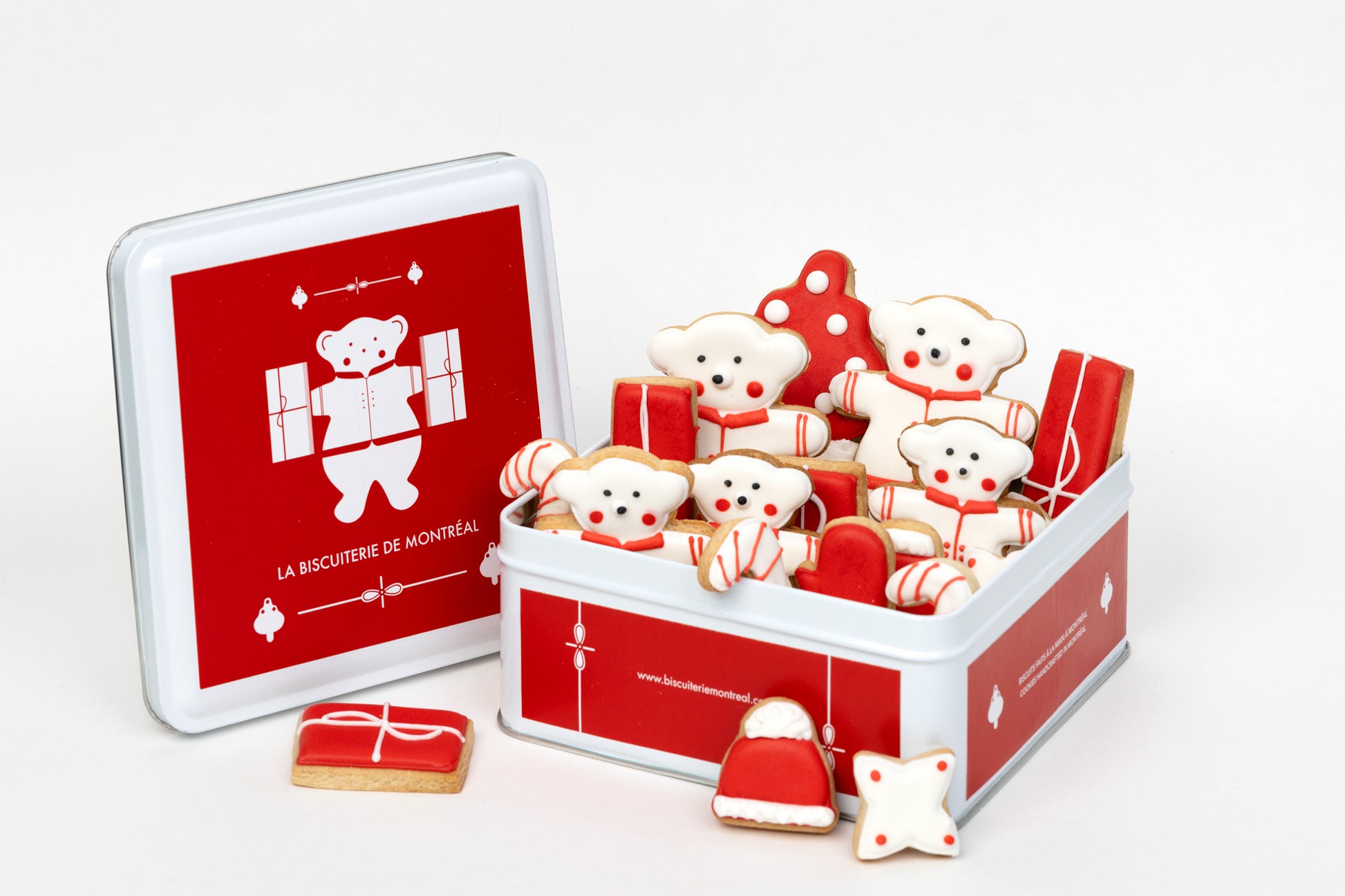 Cette boite est notre plus populaire, enfants et grands tombent tous sous le charme de nos adorables oursons! Votre table de Noël sera des plus élégantes.