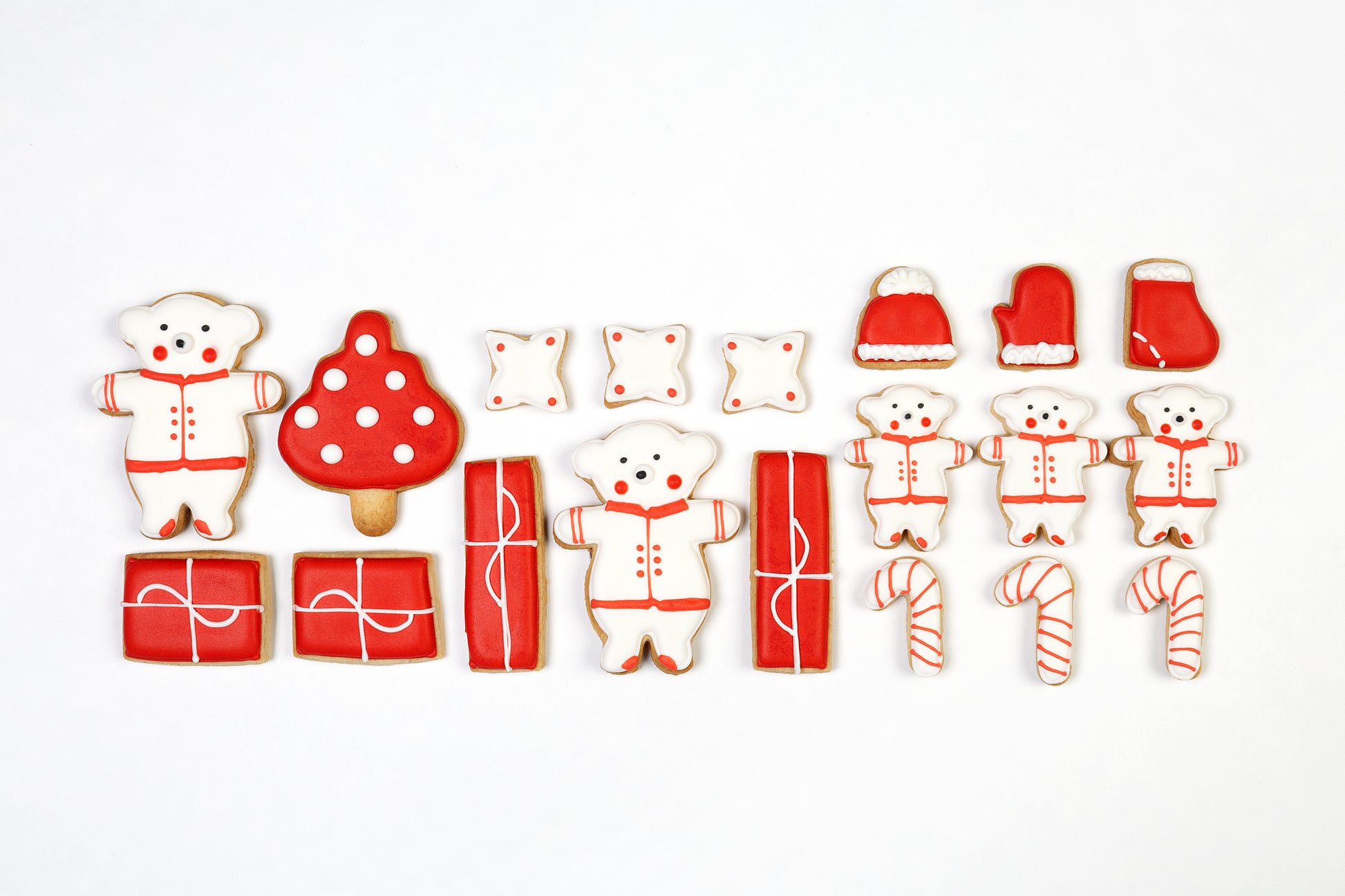 Sucre à glacer, blancs d’œufs déshydratés, eau, crème de tartre, sel et colorants alimentaires.